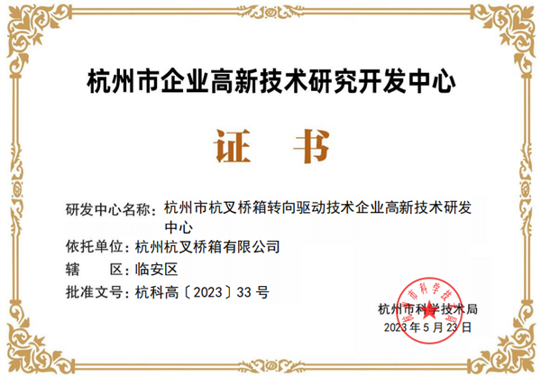 近期,杭州市科學技術局發布《關于認定2023年杭州市企業高新技術研究開發中心的通知》,杭叉集團下屬杭叉橋箱、杭叉門架、杭叉機械設備、杭叉智能、杭叉鈑焊5家子公司的企業高新技術研究開發中心成功上榜!