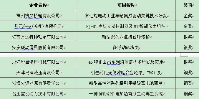 參與本屆創新獎評選活動的企業共20家,申報項目為25項,包括關鍵零部件創新、智能化產品、互聯網應用、新能源等新技術。參評企業代表按照抽簽順序依次對申報項目進行詳細介紹,重點針對產品技術方向、產品創新性、行業代表性、產品成效性、市場發展潛力等方面進行闡述。12位評委針對參評項目進行現場提問和打分。經專家評委組打分和討論,最終確定獲獎名單如下: