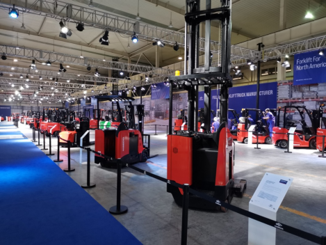 新產(chǎn)品展示現(xiàn)場(chǎng)分為新產(chǎn)品發(fā)布區(qū)、鋰電產(chǎn)品展示區(qū)、北美產(chǎn)品展示區(qū)、概念車(chē)展示區(qū)、倉(cāng)儲(chǔ)車(chē)展示區(qū)、細(xì)分市場(chǎng)展示區(qū)、大噸位車(chē)展示區(qū)、X系列電動(dòng)叉車(chē)展示區(qū)、AGV演示區(qū)、新能源產(chǎn)品展示區(qū)、高空作業(yè)設(shè)備展示區(qū)及屬具展示區(qū)等,參展產(chǎn)品和零部件共計(jì)200余臺(tái)套,向全球代理商和客戶(hù)集中展示了杭叉新開(kāi)發(fā)的工業(yè)車(chē)輛和核心部件。