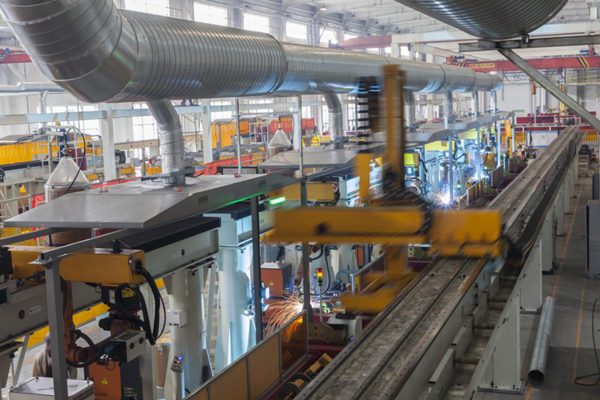 杭叉門架大范圍采用焊接機器人流水線作業,每個焊接點位設置除塵系統統一收集焊接煙塵。