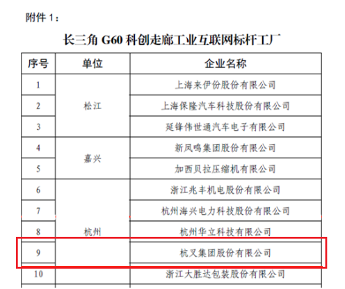 近日,長三角G60 科創走廊聯席會議辦公室公布了工業互聯網標桿工廠和標桿園區的通知,杭叉集團股份有限公司入選“長三角G60科創走廊工業互聯網標桿工廠”名單。