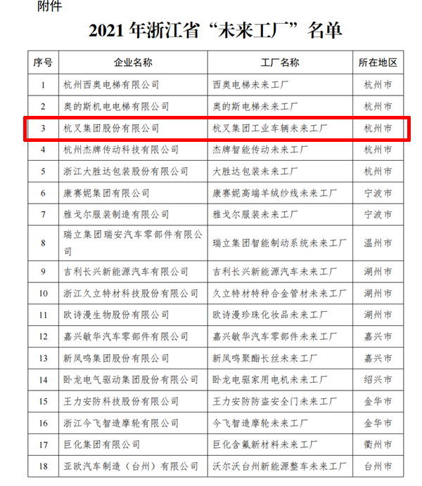 近日,浙江省經(jīng)濟(jì)和信息化廳公布了2021年浙江省“未來(lái)工廠”名單,杭叉集團(tuán)股份有限公司(以下簡(jiǎn)稱“杭叉集團(tuán)”)傾力打造的“工業(yè)車輛未來(lái)工廠”憑借數(shù)字化賦能高質(zhì)量發(fā)展榮耀入選。