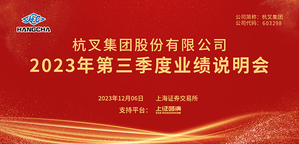 2023年12月6日,杭叉集團股份有限公司(股票代碼603298)通過上證路演網“業績說明會互動平臺”成功舉辦線上“杭叉集團2023年第三季度業績說明會”,與廣大投資者就公司發展戰略、業績表現、未來規劃、海外拓展等議題進行了坦誠充分的交流。出席本次業績說明會的嘉賓包括公司董事長兼總經理趙禮敏先生、獨立董事蔡云峰先生、總經理助理兼董事會秘書陳賽民先生以及總會計師兼財務負責人章淑通先生等。