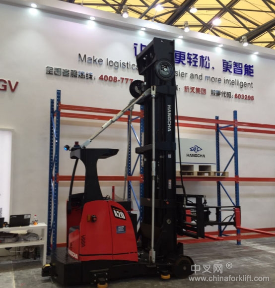高位揀選車因技術(shù)難度大,國內(nèi)能夠研發(fā)制造該類產(chǎn)品的公司沒有幾家。杭叉集團(tuán)憑借雄厚技術(shù)研發(fā)實力以及領(lǐng)先的生產(chǎn)制造工藝成功研發(fā)了最大起升高度可達(dá)12.5米的高位揀選車,在本次展會展示的是9.5米的高位揀選車,目前主要以國外市場為主。杭叉工作人員介紹:因AGV已做了展示了,加上場地問題,所以高位揀選車沒有做動態(tài)演示,但仍達(dá)到了預(yù)期的效果,來了解的人非常多,主要是國外的客戶為主,甚至有東南亞客戶直接表達(dá)要代理杭叉該類產(chǎn)品的意愿。