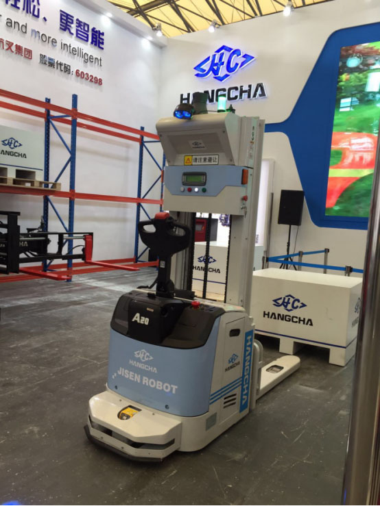 本次參加展會的是杭叉的兩款“明星”產(chǎn)品,一款是窄巷道三向AGV,杭叉是全國首家研發(fā)成功窄巷道三向AGV的公司,該項目已成功在江蘇賽拉弗光伏系統(tǒng)有限公司的成品倉庫順利運行,并通過了項目驗收,窄巷道三向AGV設(shè)備可以在1.9米寬的巷道內(nèi)完成三向旋轉(zhuǎn),進(jìn)行9.5米高度貨物的自動出入庫作業(yè),顛覆了傳統(tǒng)高位貨架的作業(yè)模式,集成了ERP、WMS、自動調(diào)度系統(tǒng)、輸送線、WCS等軟硬件,真正實現(xiàn)了倉庫的無人化運作。另一款是:激光引導(dǎo)AGV堆垛車,具有無軌化運行、無線通訊、自動導(dǎo)航、自主充電、自主避障、故障自診斷等功能,據(jù)杭叉AGV工業(yè)車輛研發(fā)部門負(fù)責(zé)人的介紹,此激光引導(dǎo)AGV堆垛車還具有高精度及與WMS對接的優(yōu)勢,目前杭叉還在研發(fā)更大噸位的產(chǎn)品,以滿足市場的需求。