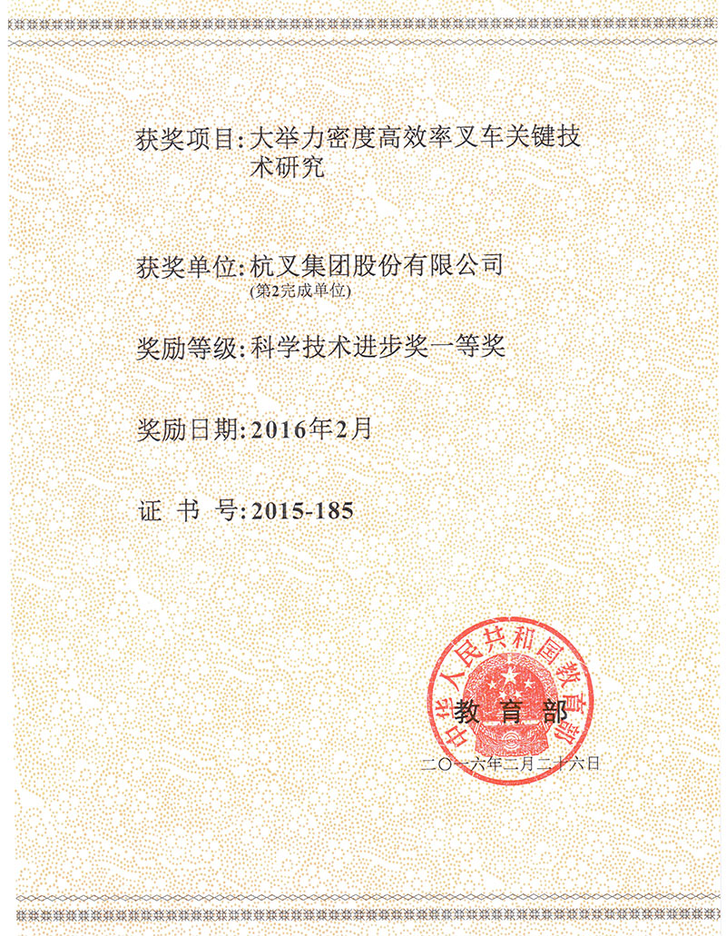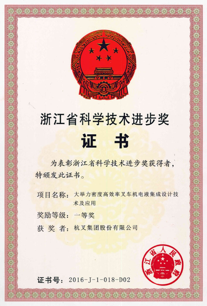 近日,2017年度中國機械工業科學技術獎頒獎大會在濟南隆重舉行。杭叉集團股份有限公司和浙江大學合作的“大舉力密度高效率叉車設計制造關鍵技術研究”項目喜獲科學技術一等獎。這是該項目繼榮獲2016年教育部科學技術進步獎一等獎和2016年度浙江省科學技術進步一等獎后的又一殊榮。