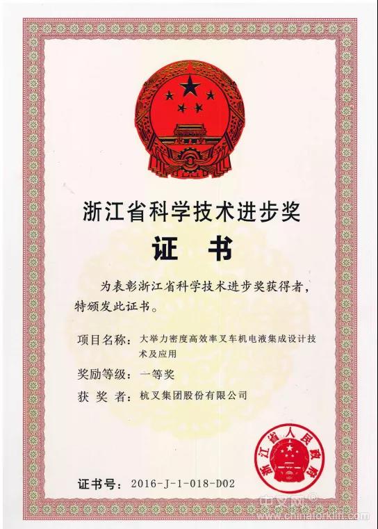杭叉集團榮獲浙江省科技進步一等獎