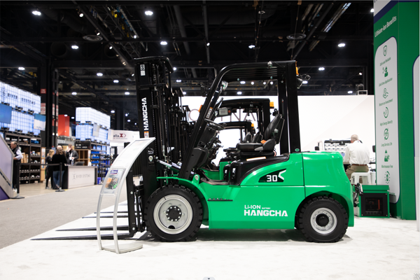 在本次展會上,杭叉共展出了20種不同的物料搬運設備,全方位展示了杭叉系列化創新產品,彰顯了杭叉強大的研發、制造實力。其中最新款6噸X系列鋰電叉車,2噸XC系列三支點鋰電叉車引起了廣泛關注。而最火爆的一款,還要數3噸XE 系列鋰電專用叉車。該款叉車采用了與內燃叉車相似核心設計元素,如大輪胎,加強型門架及更高的離地間隙,再加持杭叉鋰電專用架構及永磁同步技術,引得客戶紛紛來觀看、體驗。很多客戶在了解后都迫不及待,當場下單,讓它當之無愧成了“展紅”產品,也讓杭叉成為了“展紅”攤位。杭叉還是第一個在北美設立研發中心的中國叉車企業,深耕北美市場多年,開發了系列本地化的產品,深受北美市場追捧。