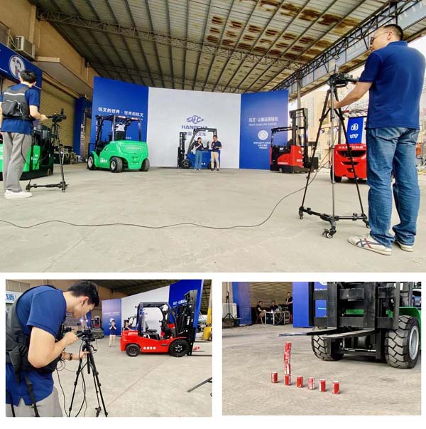 活動(dòng)中還穿插產(chǎn)品路演、安全知識(shí)問題以及叉車趣味操作演示等內(nèi)容,參加路演的產(chǎn)品有0.5噸中位揀選車、座駕前移式叉車、XC系列4.5-5噸電叉、迷你二代1.5-2噸鋰電池搬運(yùn)車、X系列3.2噸氫能源叉車。