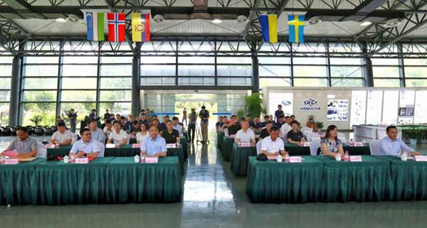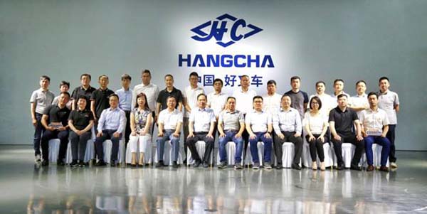 杭叉集團董事長兼總經(jīng)理趙禮敏(從右至左第三位)、杭叉集團總工程師徐征宇(左一)與參會嘉賓合影