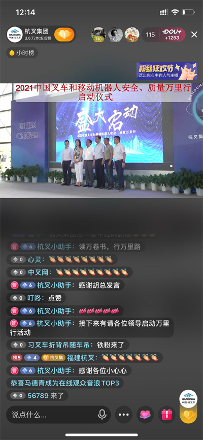 杭叉集團作為本次活動的協(xié)辦單位,對本次活動給予了大力支持,為共同促進行業(yè)產(chǎn)品質(zhì)量和安全的宣傳氛圍,對啟動儀式進行了全程現(xiàn)場直播。